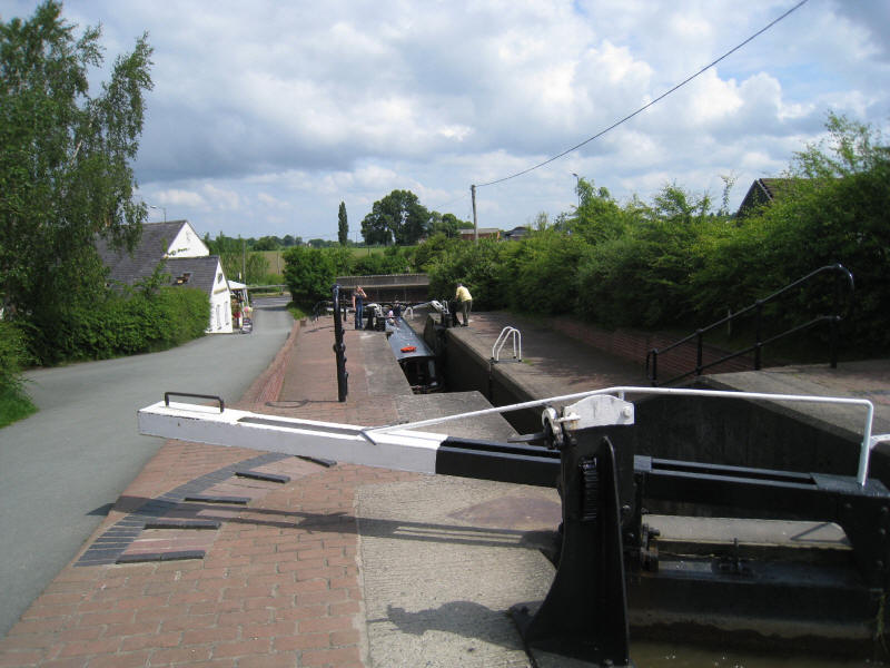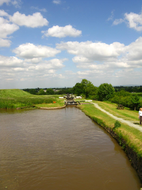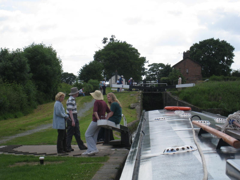 Looking down Hurleston locks. From the top lock, Jane, Mary and Stephen