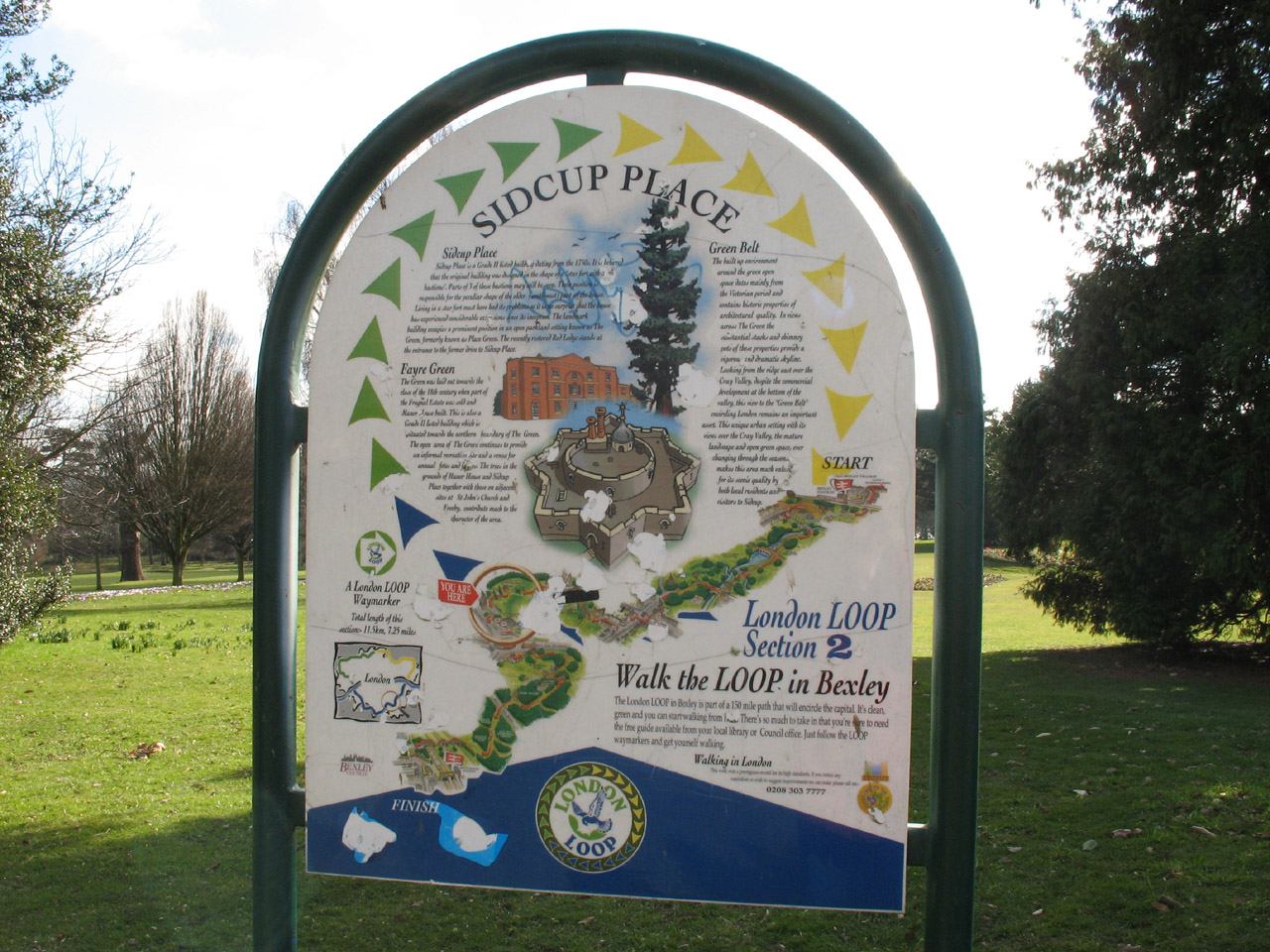 In the grounds of Sidcup Place we find the second of these interpretive London Loop signs.