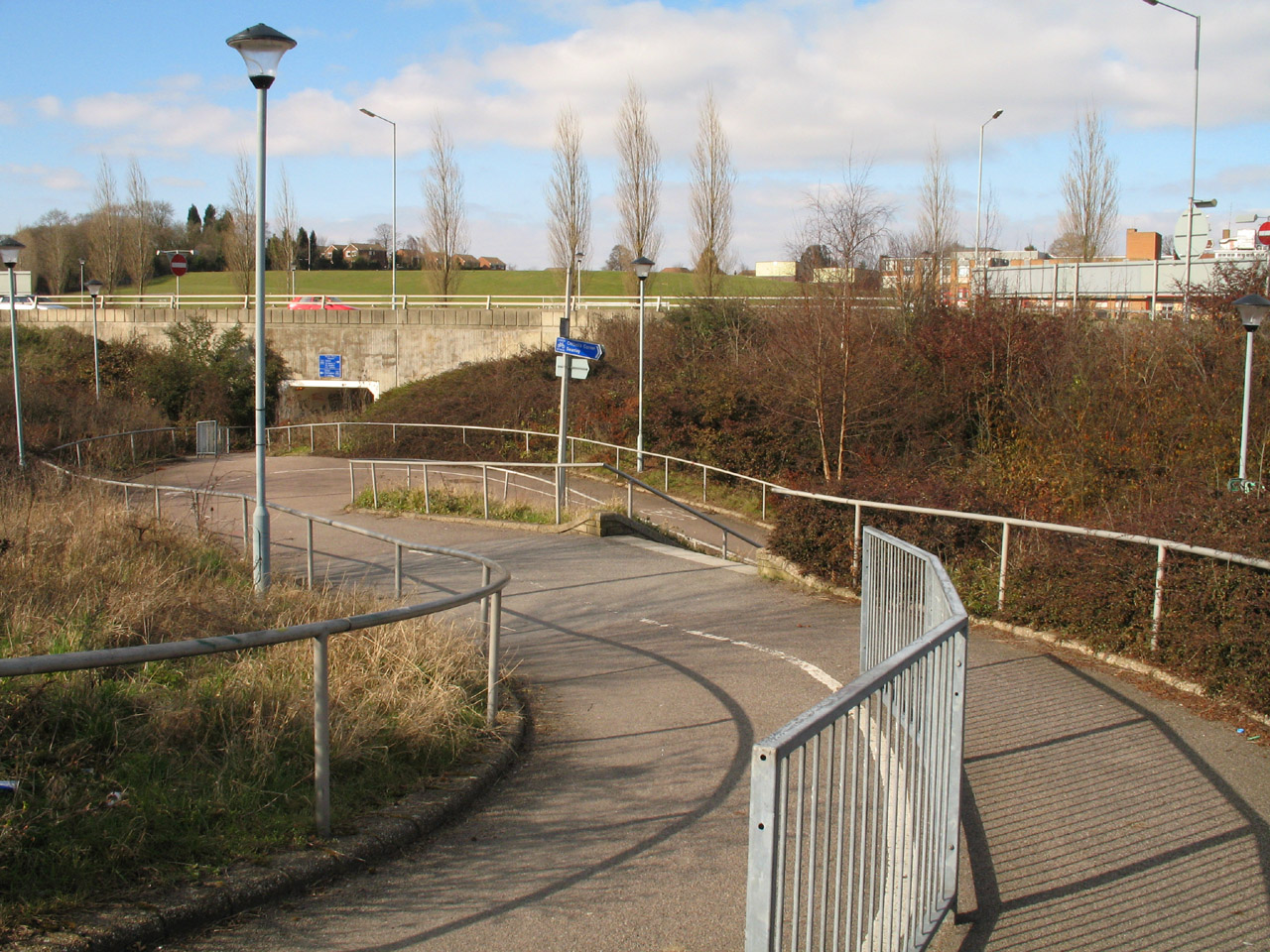 road, then this switchback cycle path with shortcutting steps for pedestrians