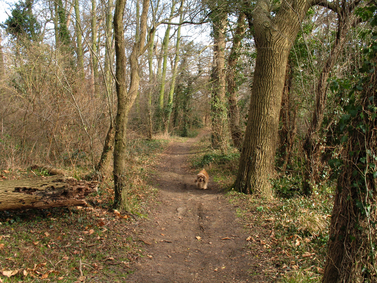 Having crossed the A208, we continue through the woodland of The Gorse.
