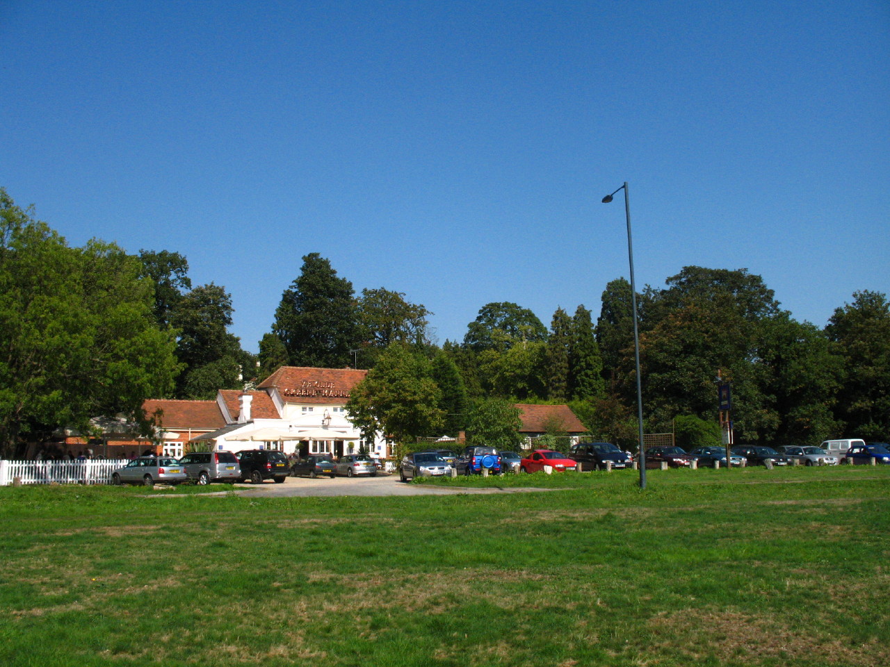 Looking from the lunch spot across the A404 road to The Greene Mann pub which