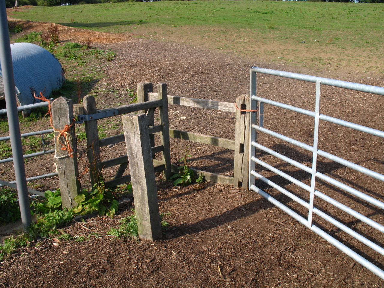 This kissing gate has been buried in wood chips, but fortunately the adjacent
