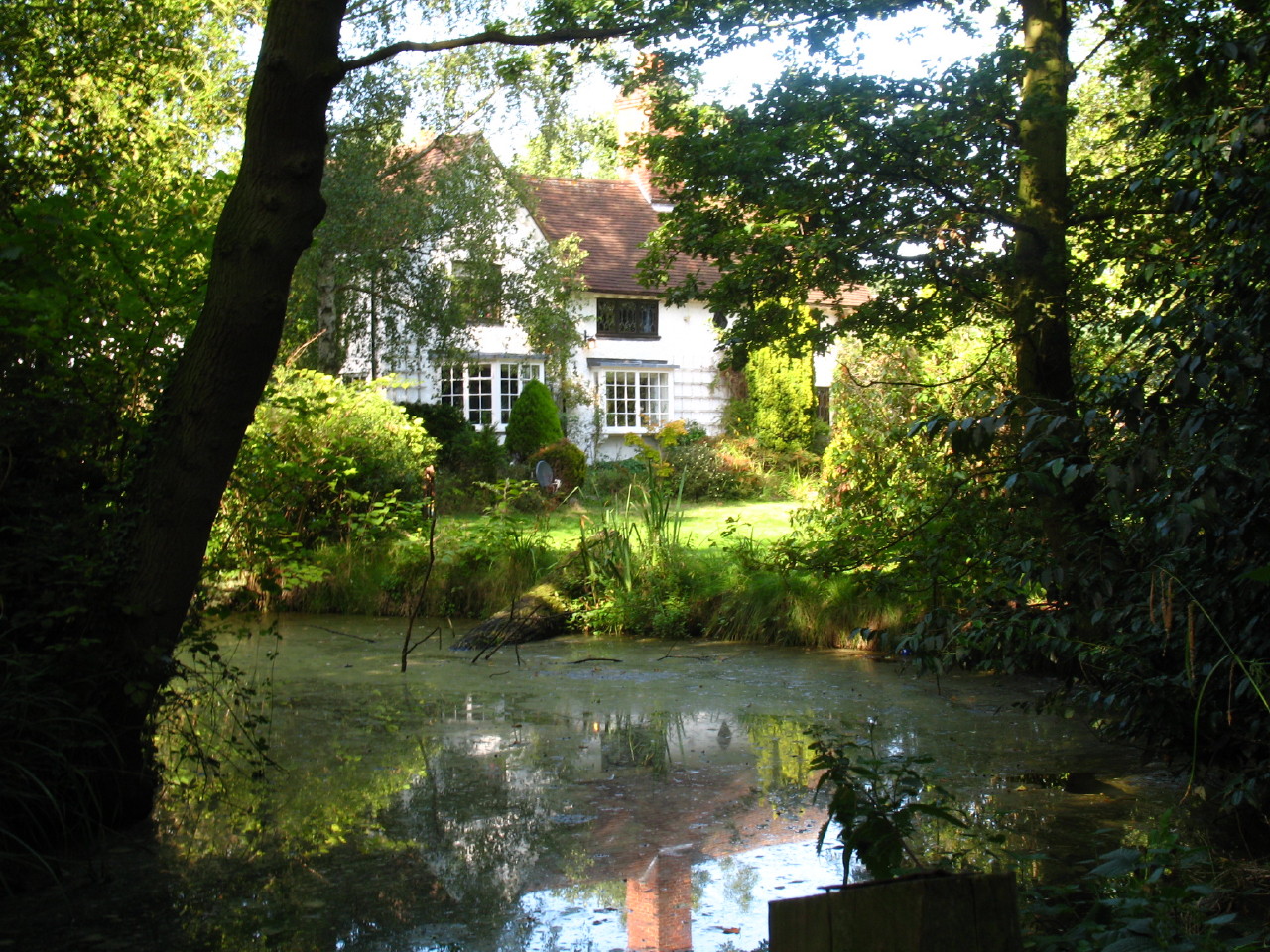 The early 18th-centrury Pinnerwood House across its pond. The house was home to